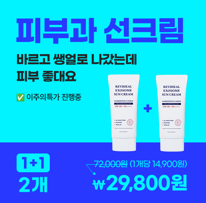 "그냥 이거만 쓱 바르고 쌩얼로 나갔는데 만나는 사람들마다 피부가 좋대요~" 자외선 차단과 피부 관리를 동시에 해주기 때문인데요😍 NEW 리비힐 엑소좀 선크림은 리뉴얼 출시되면서 피부에 좋은 엑소좀 성분 "O"가지가 추가되었어요! 빈칸에 들어갈 숫자는?