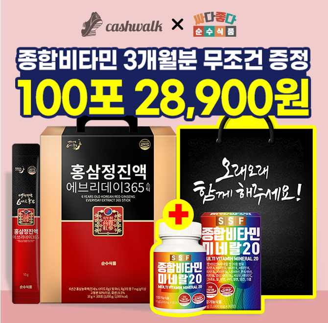 단독혜택🚨100포 홍삼+종합비타민 3개월분 무조건증정 캐시워크 정답