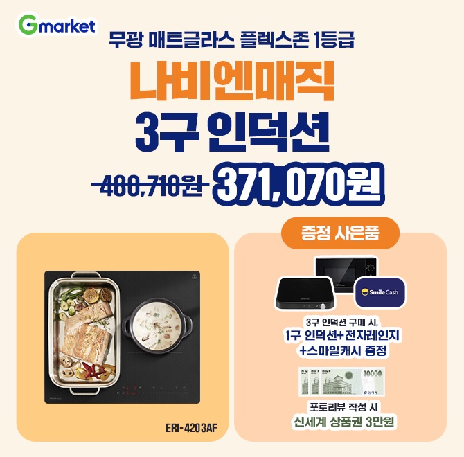 4/14(화) 단하루 경동나비엔 무광 매트글라스 3구 인덕션 특가! ✔ 22% 할인 37만원대 득템 ✔ "OOO"존·1등급 고효율 인덕션 ✔ 인덕션(3구) 구매시 : 전자레인지+1구 인덕션+스마일캐시 증정 포토리뷰 작성 시 신세계 상품권 3만원까지 풀세트 혜택으로 장만하세요! (힌트: ㅍㄹㅅ)