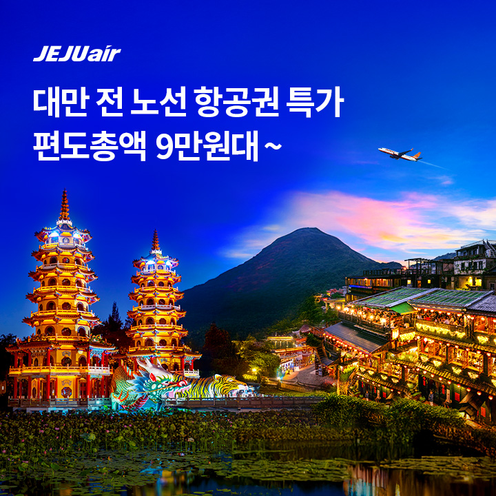 감각적인 미식과 화려한 시티뷰의 향연! 가볍게 떠나기 좋고 즐길 건 더 많은 여행지, 대만! 대만의 진짜 매력 속으로 빠져볼까요? [대만 여행 준비, 항공권 특가부터] ▶판매기간: 26년 4월 21일~26년 4월 27일 ▶탑승기간: 26년 4월 21일~26년 7월 31일 [여행을 위한 맞춤 혜택] ▶대만 단독 최대 10% 할인코드 ▶카카오페이 결제 시 최대 5만원 즉시 할인 ▶토스페이, 우리카드 결제 혜택까지! [놓치면 아쉬운 제휴 혜택 라인업] ▶ [kkday] 대만 인기 여행 상품 최대 57% 혜택 ▶ [와이드모바일] 와이파이 도시락 ○○% + eSIM 10% 할인 ▶ [이벤트] kkday 3만 포인트 댓글 추첨 증정 (10명) 망설임은 여행의 시작만 늦출 뿐! 지금 제주항공 특가 항공권을 확인하고, 가장 가벼운 가격으로 대만의 여름을 선점하세요!