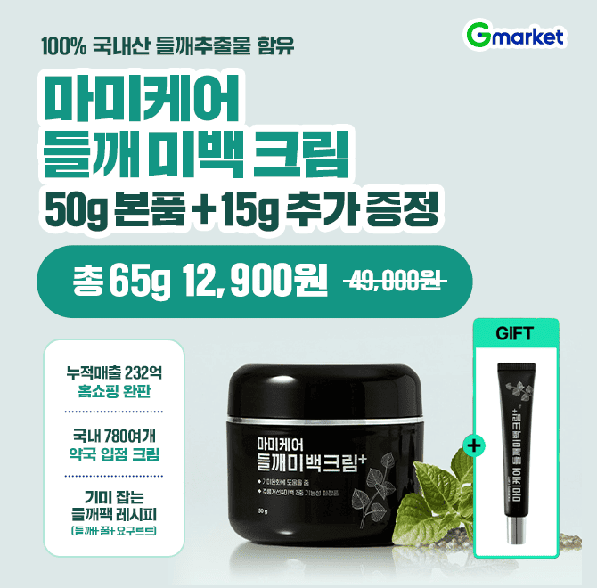마미케어 국내산 들깨 미백 크림 50g 본품 + 15g 추가 증정 단하루 12,900원 특가! 국내 780여개 "OO" 입점 크림 ✅경상북도 영주시 들깨추출물 함유 ✅유명 들깨팩 레시피 그대로 반영 (들깨+꿀+요구르트)