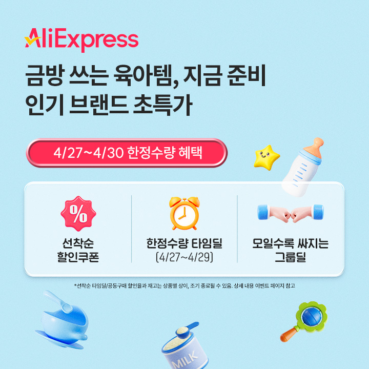 오늘은 육아 인기 브랜드 ㅎㄱㅅ 데이! 알리익스프레스에서 입소문 육아템 초특가 진행 중, 지금 쟁일 타이밍! 특히 하루에도 여러번 교체해야하는 기저귀가 1박스에 단돈 3만원부터라구요! 매일 쓰는 육아템 지금 알리 베이비페어에서 더 합리적인 가격으로 준비하세요