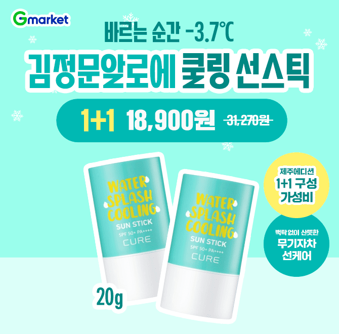 김정문알로에 ★1+1★ 빡세일 특가 +100% 사은품 김정문알로에 "OO"워터 스플래쉬 쿨링 선스틱 20g 오늘 하루 특별 구성! 올 여름, 백탁 없이 산뜻한 무기자차 선케어템과 함께 시원하고 쾌적한 여름 보내요!