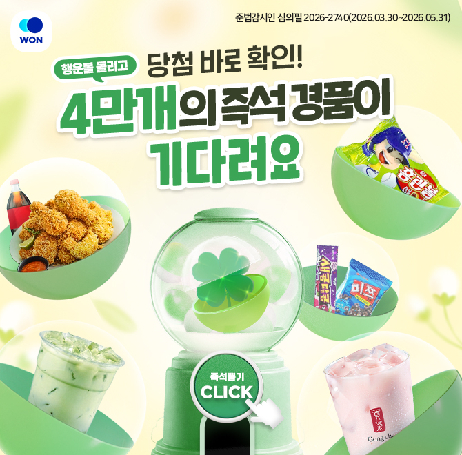 우리은행 WONPLAY 즉석 당첨 경품은 OOO 뽑기로 응모할 수 있다. OOO에 들어갈 말은?(힌트 : ㅎㅇㅂ)