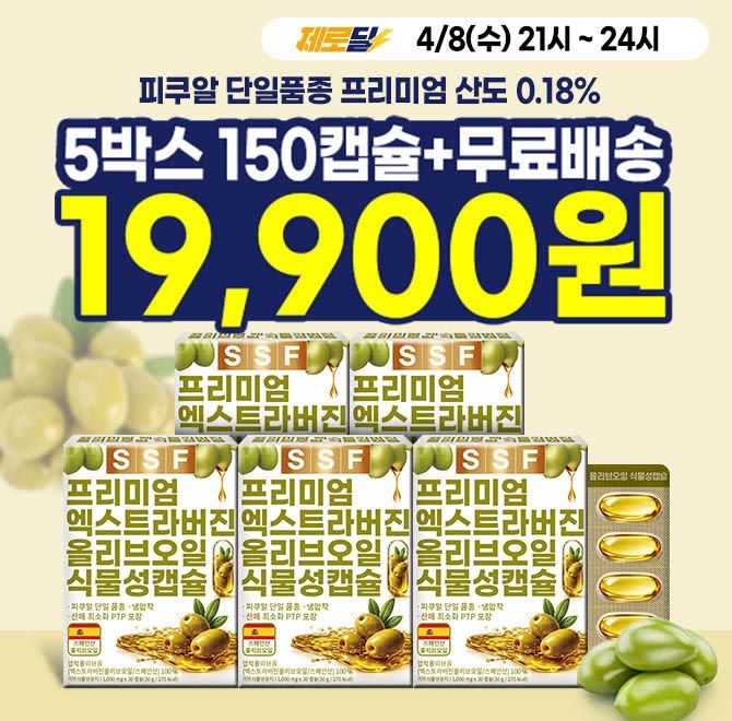 단 3시간 동안 진행되는 "캐시딜" 타임특가에서 순수식품 신제품 올리브오일캡슐이 역대급 할인으로 OOOOO원+무료배송에 진행됩니다. 올리브유캡슐은 신제품으로 산도가 0.18% 프리미엄 엑스트라버진으로 만들어졌습니다. 빈칸에 들어갈 숫자는 무엇일까요?