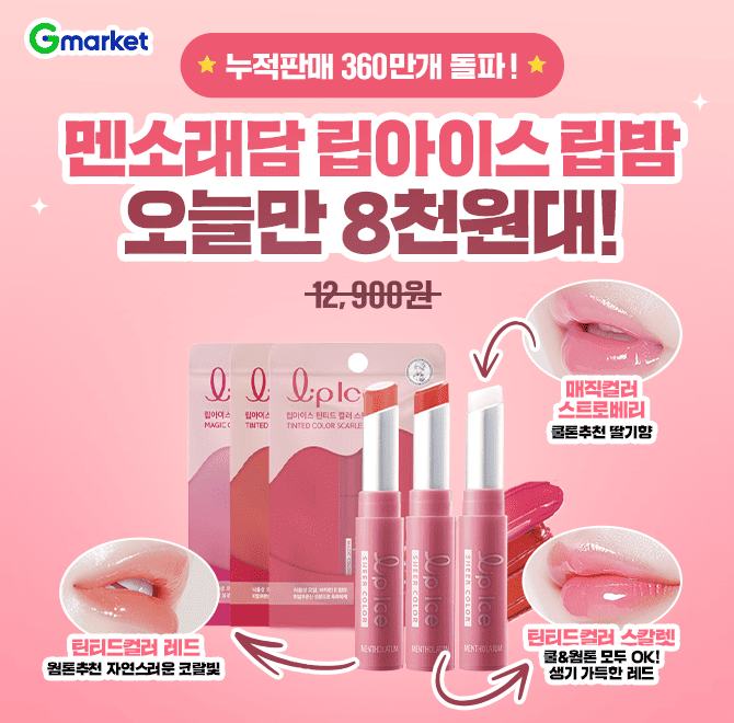 오늘만 맨소래담 립아이스 매직컬러 립밤 ⭐8천원대⭐ 수채화처럼 자연스레 물들어 생기 가득 촉촉 입술 완성! 맨소래담 립아이스 매직컬러&틴티드 컬러 #수채화 발색 #"OOO" 케어 맨소래담 컬러립밤 G마켓 특가로 만나보세요!