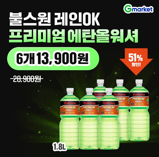 불스원 "ㅇㅇ" OK 프리미엄 에탄올워셔 1.8L 6개 오늘만! 28,900원 > 13,900원 ✅ 선명한 시야 확보 가능! ✅ 높은 세정력으로 안전 운전! 단 하루 혜택 놓치지말고 구매하러가기 >>>