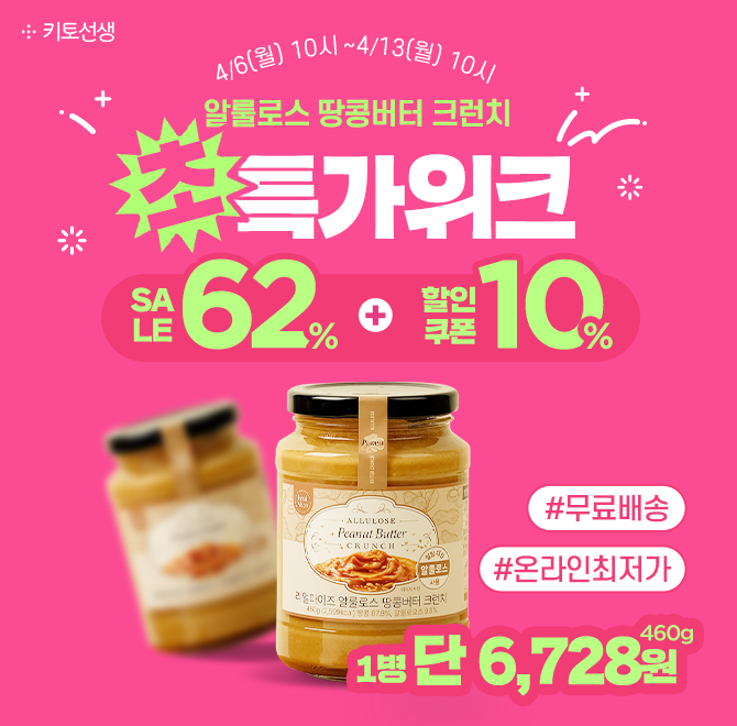 62%할인+10%쿠폰 제공💥저당 땅콩버터 6,728원 캐시워크 정답