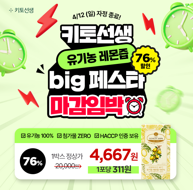76% 빅페스타 마감임박⚠유기농 레몬즙 1포 311원 캐시워크 정답