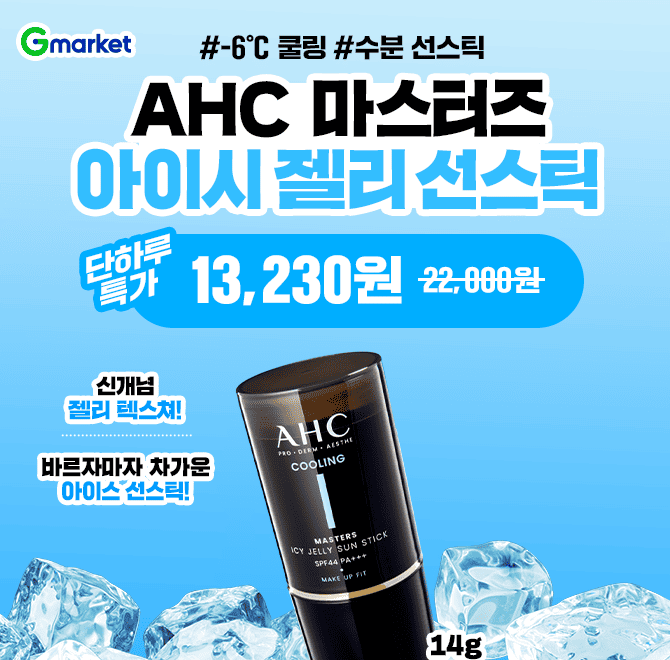 단 하루! AHC 마스터즈 아이시 젤리 선스틱 특가! 선케어 마스터즈 AHC가 야심차게 선보이는 쿨링 젤리 선스틱! ✅신개념 젤리 텍스쳐 ✅바르자마자 차가운 아이스 선스틱 ✅"OO" 보관한 제품만큼이나 시원한 #아이시젤리선스틱 G마켓 특가 놓치지마세요~!