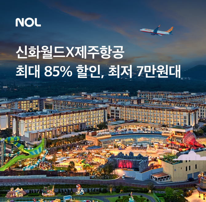 [제주신화월드x제주항공] 한번에 준비하는 OO 여행! NOL 라이브 특가로 떠나는 OO 여행! - 제주 - 대구 - 부산 - 인천 - 경주 NOL 라이브 최대 85% 할인, 최저 7만원대 라이브 선착순 10% 쿠폰(최대 4만원) + 신화월드 전용 더하기 쿠폰 + 국내선 항공 중복 쿠폰! 구매인증 이벤트 추첨까지!